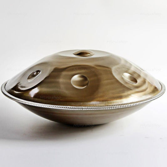 MiSoundofNature King Handmade Customized 22 Inches 9/10/12 Notes D Minor Hijaz Scale Stainless Steel / Nitride Steel Handpan Drum, Available in 432 Hz and 440 Hz - Gold-plated Sound Area