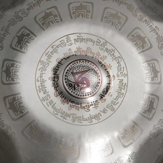 MiSoundofNature Customized Sanskrit F3 22 Inch 14(12+2) Notes Stainless Steel / Nitride Steel Handpan Drum, Available in 432 Hz & 440 Hz
