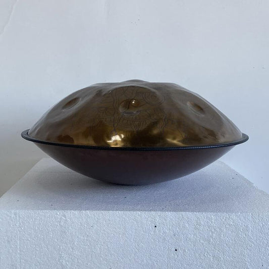 MiSoundofNature Mandala pattern Customized D Major Handmade 22 Inch 9 Notes Stainless Steel / Nitride Steel Handpan Drum, Available in 432 Hz and 440 Hz - Gold-plated Sound Area