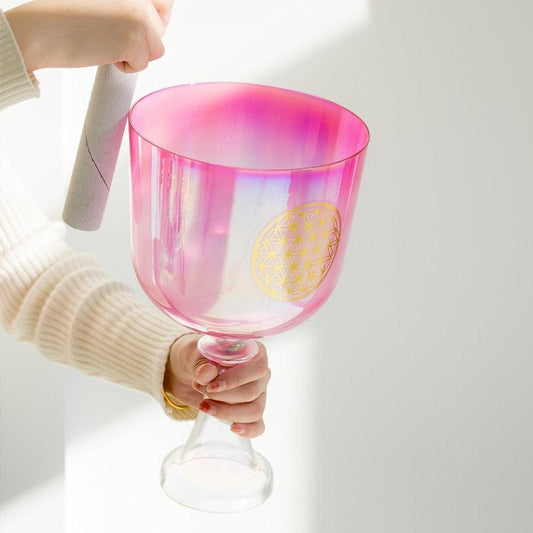 MiSoundofNature Flower of Life 6-8 inches Crystal Chalice Singing Bowl Clear Quartz Bowl For Sound Healing Meditation