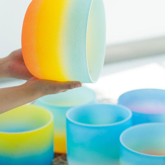 MiSoundofNature Alchemy Clear Rainbow Crystal Singing Bowls 6" - 9" Quartz Sound Bowl For Chakra Healing Relaxation