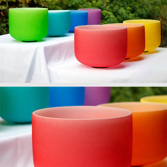 MiSoundofNature Colored Frosted Crystal Singing Bowl Set Complete 7 Chakra Sound Bath Bowl Set 430Hz/440Hz