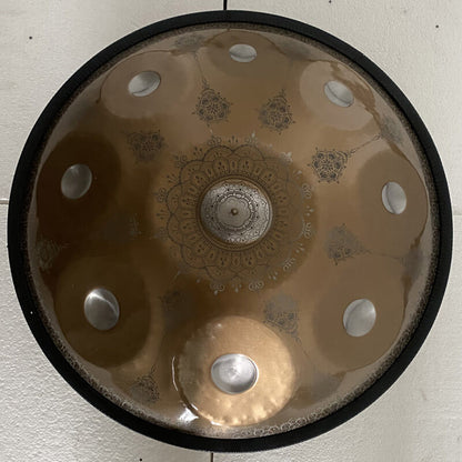 MiSoundofNature Customized F3 Dorian Scale Handmade 22 Inch 9 Notes Stainless Steel / Nitride Steel Mandala pattern Handpan Drum, Available in 432 Hz and 440 Hz