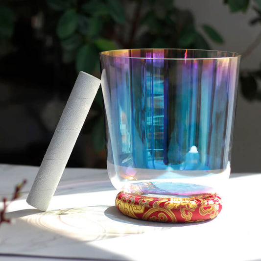 MiSoundofNature Alchemy Clear Rainbow Crystal Singing Bowls 6" - 9" Quartz Sound Bowl For Chakra Healing Relaxation