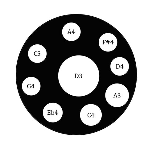 Handmade Customized HandPan Drum D Minor Hijaz Scale 22 Inch 9/10/12 NotesHluruShop Hand pan drum is a musical instrument in the idiophone class. It is constructed from two half-shells of deep drawn, with hollow inside and in the shape of a convex lens. The top ("Ding") side has a center 'note' hammered into it and seven or eight 'tone fields' hammered around the center. The bottom ("Gu") is a plain surface that has a rolled hole in the center with a tuned note that can be created when the rim is struck.