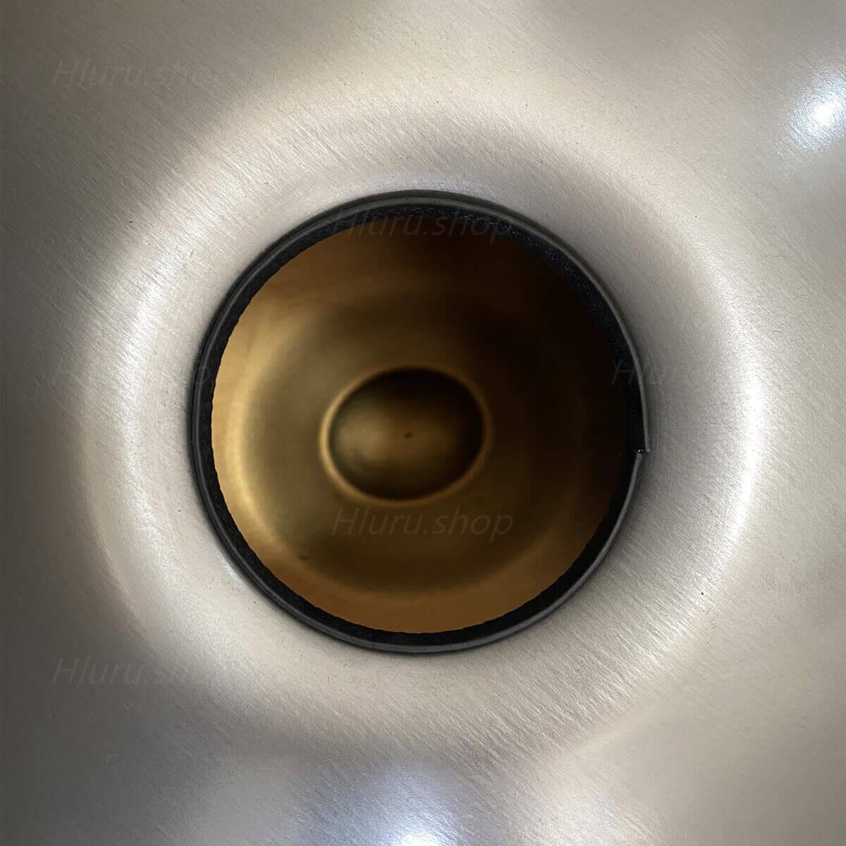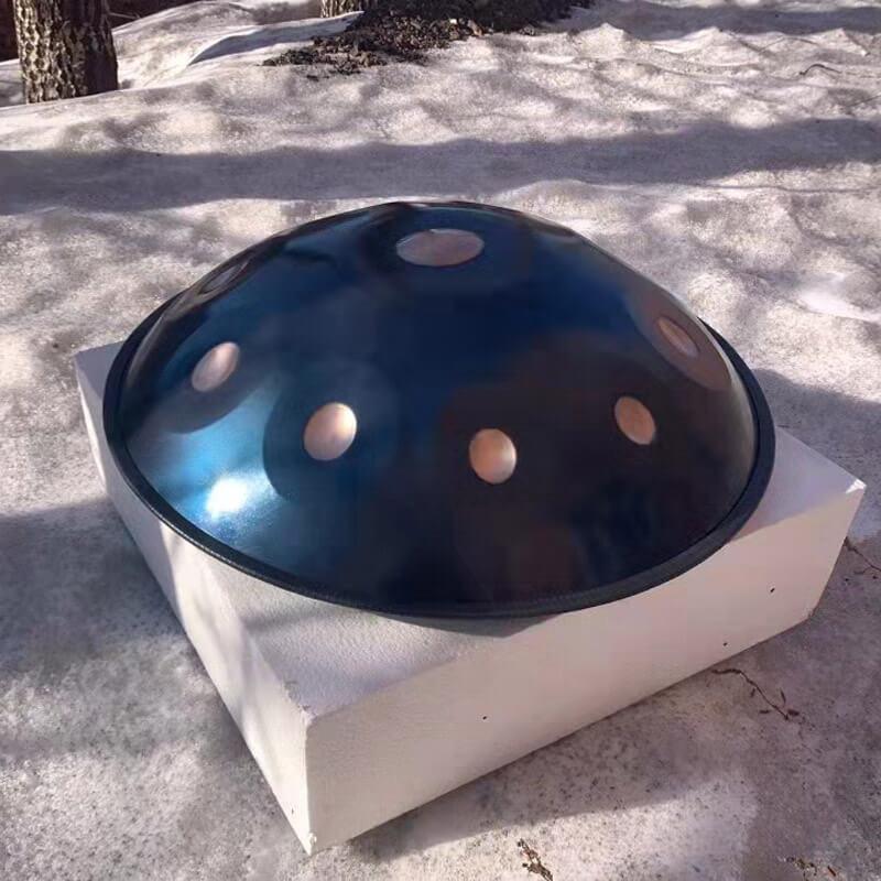 King High-end C Major 22 Inch 9/10/12 Notes Stainless Steel / Nitride Steel Handpan Drum--Severe quenching heat treatment --The material is more high-end and the sound is more beautiful. HluruShop Hand pan drum is a musical instrument in the idiophone class. It is constructed from two half-shells of deep drawn, with hollow inside and in the shape of a convex lens. The top ("Ding") side has a center 'note' hammered into it and seven or eight 'tone fields' hammered around the center. The bottom ("Gu") is a plain surface that has a rolled hole in the center with a tuned note that can be created when the rim is struck.