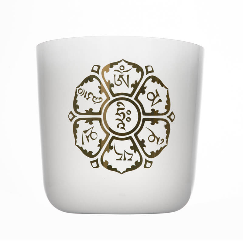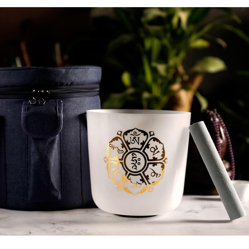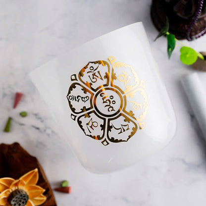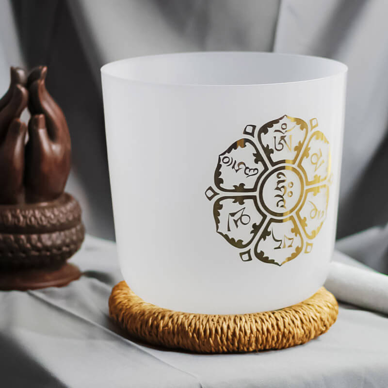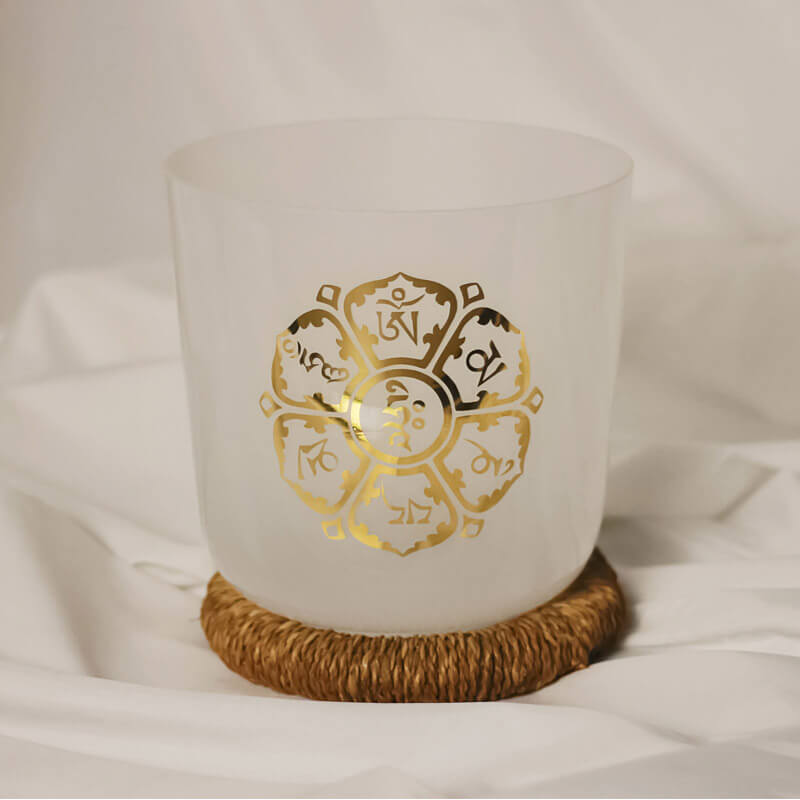 MiSoundofNature White Energysound Chakra Frosted Quartz Crystal Singing Bowl Gilded Pattern Sound Bath Bowls